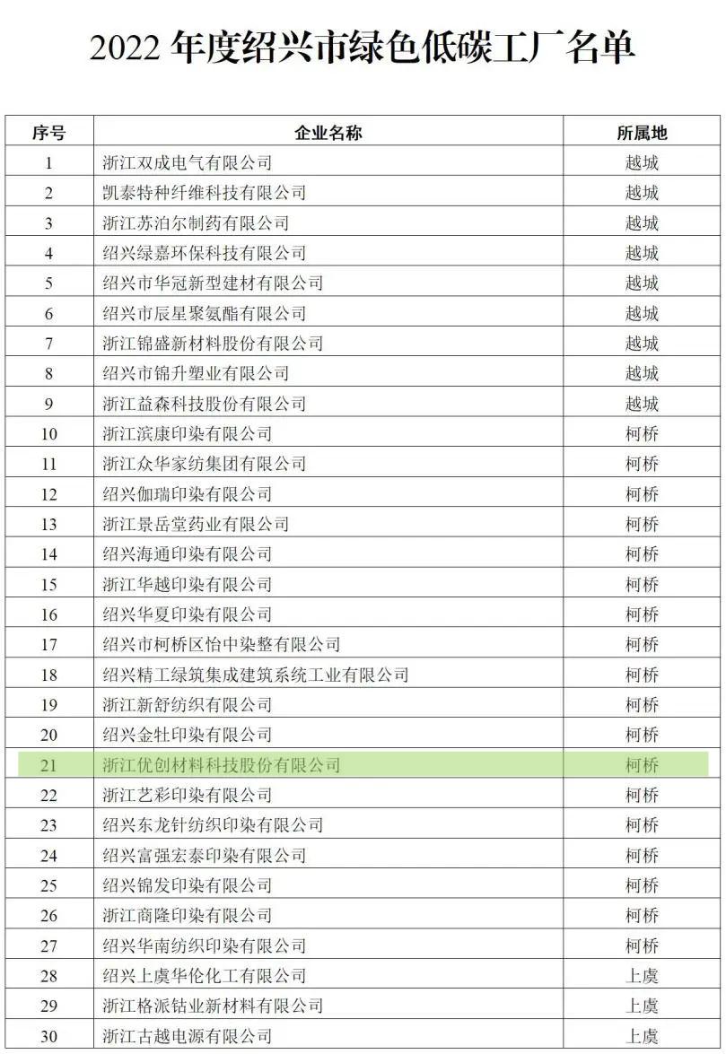我司積極響應上級為推動產業結構優化升級,提高制造業綠色低碳發展水平,打造綠色制造典型,強化綠色制造示范引領,按照《紹興市綠色低碳工廠(園區)評價辦法》(紹市經信〔2022〕36號),在各地經信部門初審推薦的基礎上,經專家評審,認定我司為2022年度紹興市綠色低碳工廠。